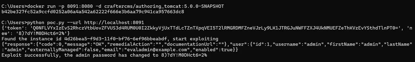 We reported this issue to the CrafterCMS security team; however, the response was not entirely satisfactory, as it was considered the responsibility of the user installing CrafterCMS to change the default configuration. In practice, many users overlook default secrets, especially when they are not clearly highlighted during installation.