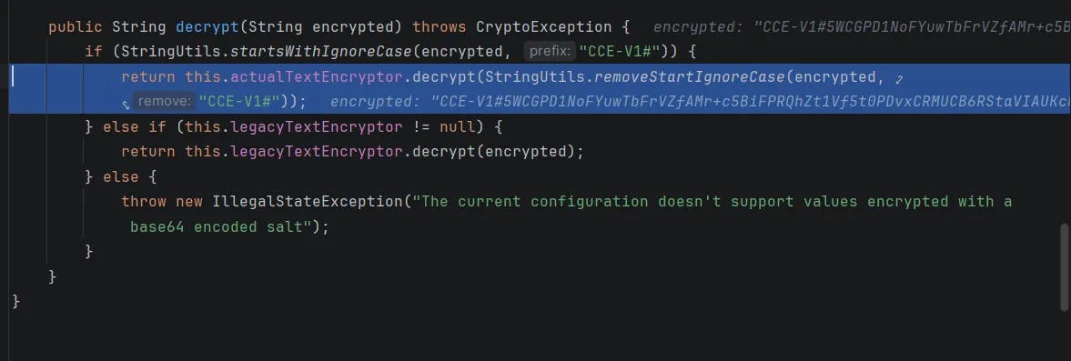 The application checks whether the token starts with CCE-V1# and then decrypts the remaining content.