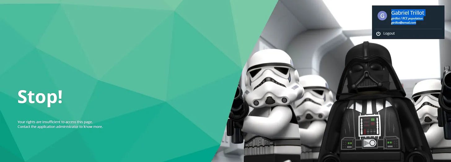 After logging in with any account, we will see the 403 page
