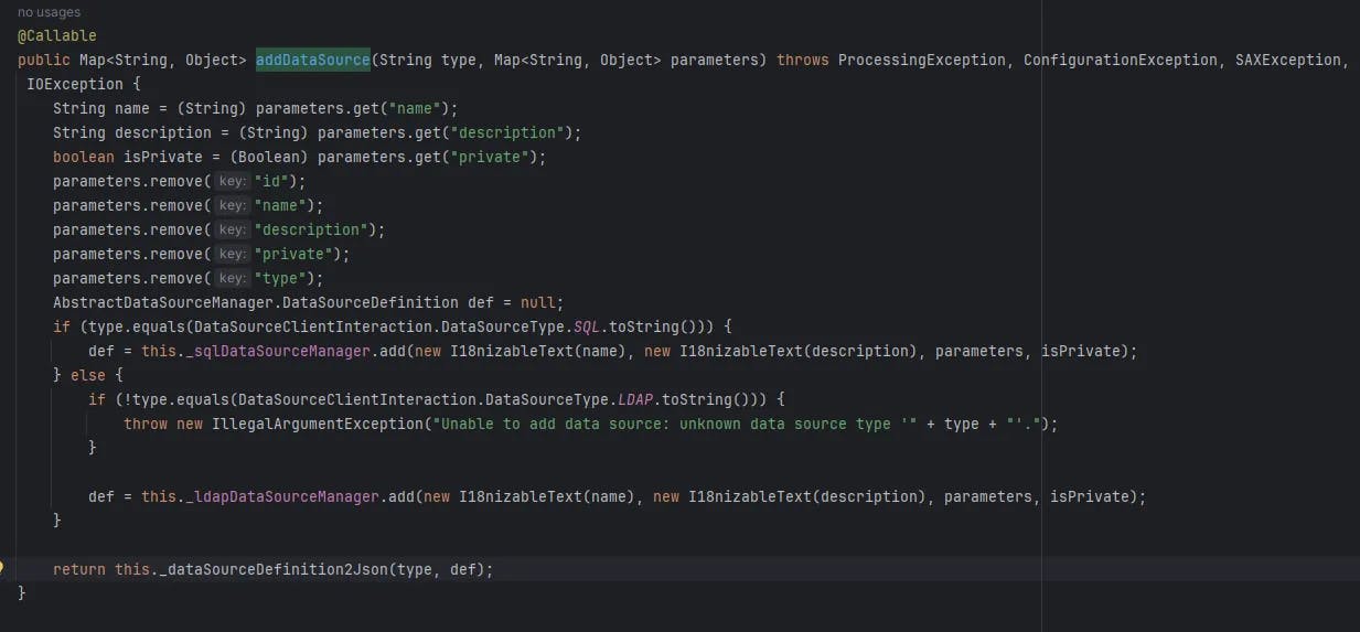 One more @Callable stood out org.ametys.core.datasource.DataSourceClientInteraction#addDataSource.
