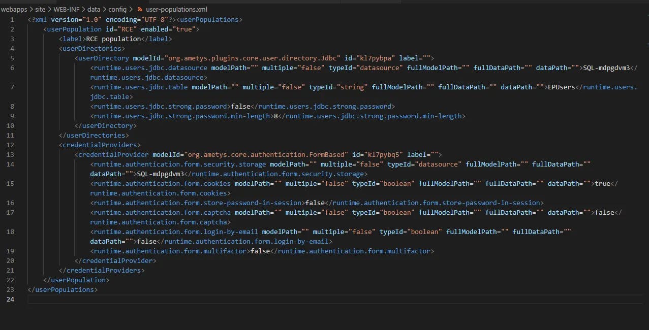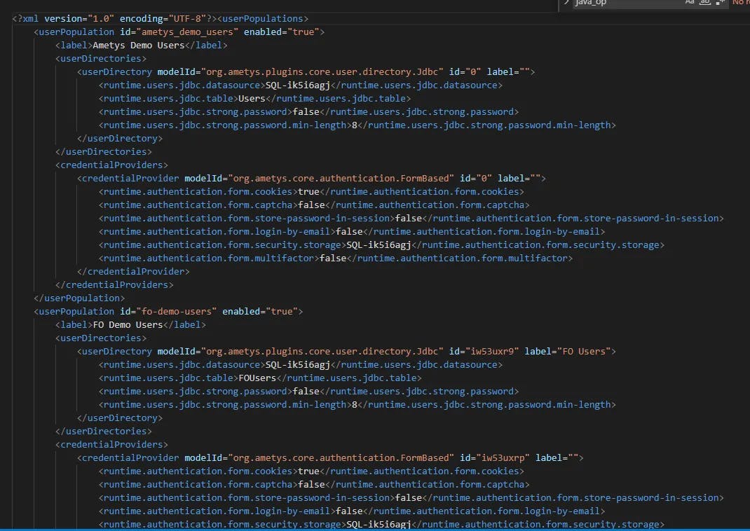 By editing this file, we could bind our new datasource to a fresh user population.